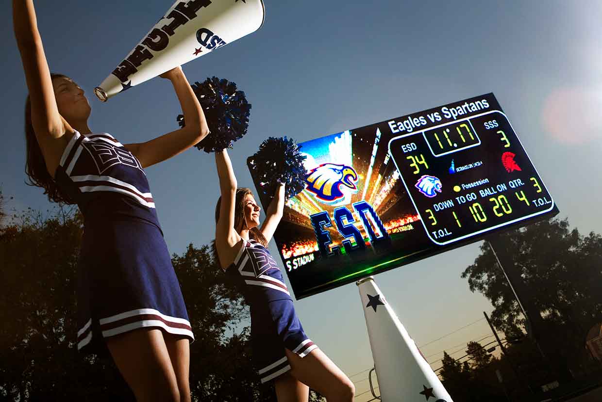 Friday night lights are shining bright in Texas again thanks to one of the largest and highest resolution video display in the country installed at the Episcopal School of Dallas. During normal game use, the high definition video screen will show pre-recorded animations, player profiles, and promotions for school and booster club events, and is also capable of showing instant replays. At first glance, the video screen looks like a big video scoreboard, but the screen is much more than that. It's a versatile state-of-the-art communication tool, and can be a revenue generating tool as well.